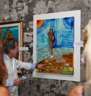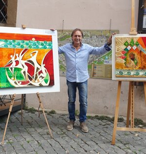 1997 Realizes the Palio di Bolsena 1998 Realizes the Maestro Fardo Award, Viterbo 2001 He realizes the Palio di S. Anselmo in Bomarzo 2003 Realizes the lithography for the 25th anniversary of the Sodality of the Porters of S. Rosa 2019 Realizes the Palio di S. Ippolito for the municipality of Vetralla. 2020 Participation in the 1st National Collective Exhibition, “100 Painters at Palazzo Fani”, Tuscania, 16-28 July 2020. 2020 William II Prize, G. Sciortino Civic Museum of Modern and Contemporary Art, Monreale, Palermo 12/18 September 2020 and subsequent publication of the selected work in the ART NOW magazine art periodical directed by Sandro Serradifalco. 2021 Proceno (VT) From 17 July to 16 August - Personal “Return to my native place”, Palazzo Sforza and Castello di Proceno. They wrote about him Carlo Galeotti (journalist and essayist director of Tusciaweb) Behind the painting by Angelo Russo «lies a theory, a way of seeing the world. jungian analytical psychology is dressed in reds, greens and blues as strong as death, as strong as life. Russo's paintings have a great theoretical and material complexity. The figures, often masks, intersect with geometric shapes with colors of an unimaginable brightness and radiance». Aldo Carotenuto (psychoanalyst and writer 1933-2005 These circular motifs, reminiscent of Van Gogh's “vortexes”, return in Russo's painting: they are dense waves of color that swirl on themselves like man's desire for his inner goal. Francesco Mattioli (sociologist) What is surprising in the paintings is the vivacity of the colors: a strong and sanguine red prevails, alternating with a dark and baroque green, and a deep midnight blue; colors at the same time bright and velvety, marked by the vigorous use of the brush. Enrico Anselmi (art critic) Russo tends to use painting essentially as a tool thanks to which he can visually deal with contents, which by their nature, give his art consonances with structuralist principles. Bright chromatic inlays on lacquered and iridescent surfaces arouse the echo of oriental cultures, in their recognizability as a "mandala" or as an individual's drive to participate in the perfect mechanisms of the universe. Pierpaolo Castellucci, (art critic) The reading of A. Russo's dreamlike and controlled gestures first of all envisages an immersion in the Jungian identification processes that cannot be deciphered by the intellect and yet able to act on the sensitivity fixed by the ornamental warp. Maria Carmela di Sclafani (journalist) It is very rare that a combination of very bright colors, indeed even bursting, does not disturb at all, but is even magnetic and unforgettable! Angelo Gargiuli (artist 1927-2019) Recognizable among a thousand, the artist Angelo Russo has in his works a very individual style to say that it refers to that school, or that name, to this or that other artistic and structural tendency is to diminish his whimsical creative personality. Rossella Battisti (journalist) winning was the sketch by Angelo Russo, an embroidery of lines halfway between the oneiric architectures of Escher and the graphics of Moebius. Salvatore Del Ciuco (Writer 1927-2013) Russo's vision of art moves within that circle of nobility of forms, which responds first of all to a strong love, to the nobility of the soul. When Russo plunges his hand into its colors and prepares to enter with modeling the power of suggestion of forms, docile and folding to the loving vision of the intellect and the heart, his introspective character and often in controversy with himself, s 'illuminates with that happiness of every authentic artist. In his very personal, unmistakable works, he has been able to reconcile a completely modern vision to the most classic traditions Also: Isabella A. Carli (journalist), Luigi Ceppari (journalist), Rita De Luca (journalist), Raffaella Galamini (journalist), Giuseppe Mascolo (journalist), Oreste Massolo (journalist), Rolando Mastrogregori (journalist), Annabella Morelli ( journalist), Carlo Maria Ponzi (journalist), Gianpiero Romiti (journalist), Alvaro Spagnesi (art critic), Daniele Camilli (journalist) Tiziana Mancinelli (journalist) Wanda Cherubini (journalist) Lorena Paris (Writer Poet)