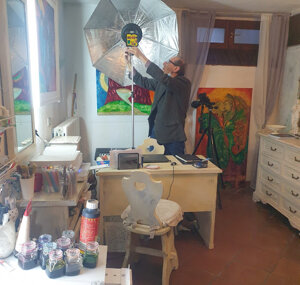 He was born in Proceno (VT) on 11 November 1952. He lives and works in Viterbo. His formation, like two reverses of the same coin, is completed between art and psychology. After studying architecture at the University of Rome "La Sapienza", with particular regard to courses in plastics, architectural composition and life drawing, he subsequently graduated in Clinical Psychology at the same University. His artistic activity began with a group exhibition at the Church of S. Egidio in Viterbo in 1975, followed by other painting groups at the Anselmi Room in 1977 and a personal exhibition in 1981 in the foyer of the Union theater. In 1987 personal exhibition at the Sala dell’Abate in S. Martino al Cimino and in 1990 personal exhibition in Vetralla in conjunction with the inauguration of the basement of the Town Hall. In the meantime, alternating his artistic activity with that of a public official, he creates the graphics for a series of posters of a local and national nature: national organ competition of the city of Viterbo, national violin competition, poster Sagra del Latterino a Marta, poster for the inauguration of the Crypt of S. Sisto in Viterbo, edition of a lithograph in 200 copies on the occasion of the LXX Regional Conference of Surveyors. In 1991 he was Winner of the International Competition for the design of the Machine of S. Rosa for the years 91/95 his work Sinfonia d'Archi will parade, on the evening of September 3, on the streets of Viterbo for 7 years (with 2 years of extension) until 1997. (height 28.50 m, about 30 m in march, weight 5.000 Kg.) In 1996 he created the floating sculpture for the procession on the lake of Trevignano Romano on the night of August 15th. Will parade mounted on a barge for 4 years height 10 m, length 16 m. Exhibitions 1992 Sweden, personal at the Gothenburg Polytechnic 1994 Personal Loggia of S. Tommaso Viterbo Personal exhibition in Bolsena Church of SS. Savior 94/95 Perugia Art Gallery Hotel Giò; Viterbo - Palace of the Popes; Prato, Centro Arti Visual C.E.P.A.C Bomarzo PAlazzo Orsini