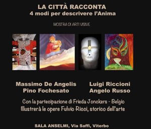 Viterbo ottobre/ 14 Novembre 2021 - Sala della Provincia - La Città racconta 4 modi per descrivere l'anima, collettiva presso la Sala Anselmi di Viterbo. ( Massimo De Angelis, Pino Fochesato,Luigi Riccioni, Angelo Russo. Con la partecipazione di Frieda Jonckers)