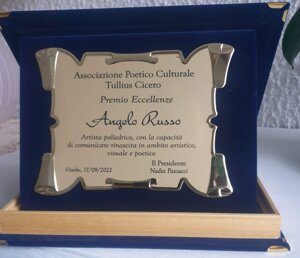 2022   17/09 Premio "Eccellenze" dall'Associazione Poetico Culturale Tullius Cicero, con la seguente Motivazione "Artista Poliedrico, con la capacità di comunicare rinascita in ambito artistico, visuale e poetico.