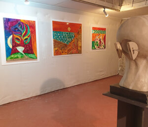Circa 20 Quadri in mostra. Polimaterici su tela.
